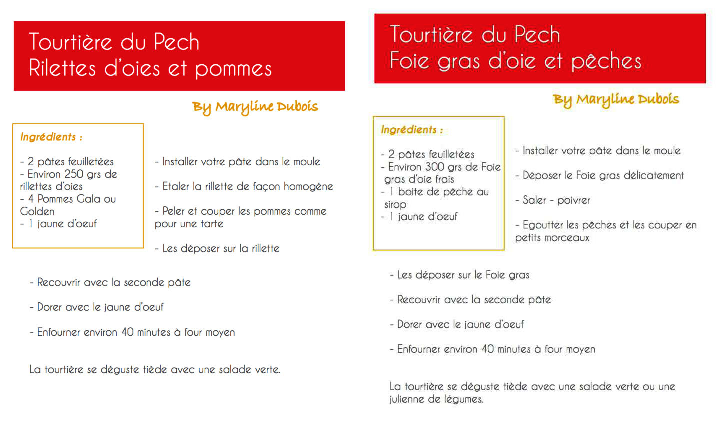Cette année, dimanche matin sur le parvis de la mairie, Maryline vous proposera, outre une sélection de ses meilleurs produits, sa « Tourtière du Pech », cuite sous vos yeux, que vous pourrez déguster et acheter, toute chaude sortie du four !