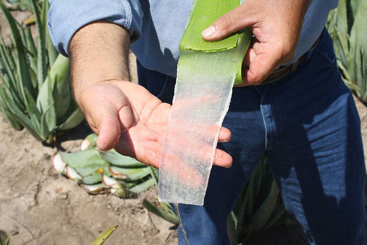 En utilisation externe , l'Aloe vera est un gel transparent non gras qui possède toutes les vertus de la plante . Il protège, rafraichit, hydrate, et régénère du fait de ses actions anti-inflammatoires et analgésiques. L'Aloe vera est très utilisé sur des brulures solaire ou ménagères, piqures d'insectes, d'orties ou de méduses.