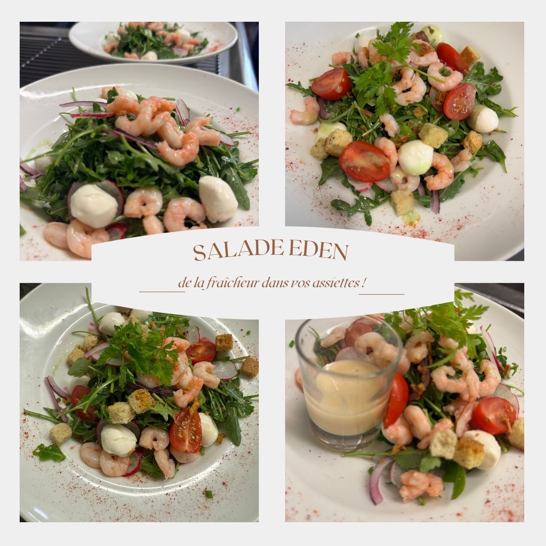 Dans un cadre chaleureux et soigné, L’Eden vous accueille pour partager ces instants de gourmandise et de convivialité. Venez savourer ces salades composées, reflet d’une cuisine qui allie tradition, créativité et respect du produit, et laissez-vous porter par la fraîcheur et la délicatesse des saveurs estivales.