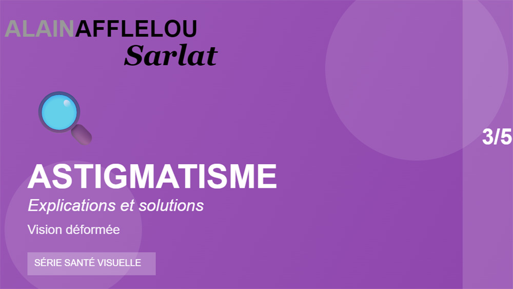 Voir clairement est essentiel dans la vie quotidienne, que ce soit pour travailler, conduire, lire ou simplement profiter de son environnement. Pourtant, de nombreux troubles visuels peuvent apparaître au fil des années, affectant notre confort et notre qualité de vie. Pour aider chacun à mieux comprendre ces phénomènes, Afflelou Sarlat lance une série d’articles mensuels à partir de novembre, dédiés aux principaux troubles de la vision. Au programme : l’hypermétropie, la myopie, l’astigmatisme, la presbytie, et les problèmes liés à la cataracte. Grâce à ces articles, vous pourrez mieux identifier vos besoins, anticiper les changements de vision et profiter des conseils personnalisés de nos opticiens pour retrouver une vision nette et confortable. Rendez-vous chaque mois pour découvrir un nouveau thème et prendre soin de vos yeux avec Afflelou Sarlat.