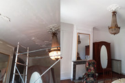 ![]() | Nous commençons par le décapage et le ponçage des surfaces; en effet, ces opérations produisent beaucoup de poussière, qu'il faut totalement évacuer avant de peindre ! Aprés quoi, nous allons préparer les surfaces, murs et plafonds, en rebouchant les petits trous et petites fissures, en traitant les tâches de gras ou d'humidité à l'aide de produits spécifiques. |