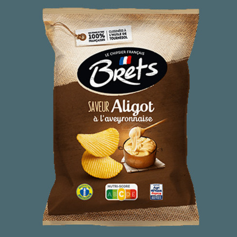 Les chips Bret’s saveur Aligot s’inspirent du célèbre plat de l’Aubrac à base de fromage et de pomme de terre. Ultra gourmandes, elles offrent un goût fromager riche et réconfortant, parfait pour l’apéritif. Des chips françaises, sans huile de palme, à partager sans modération.