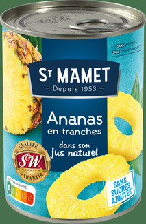 L’ananas en tranches 3/4 St Mamet est soigneusement sélectionné puis conservé pour préserver sa texture fondante et son goût exotique.