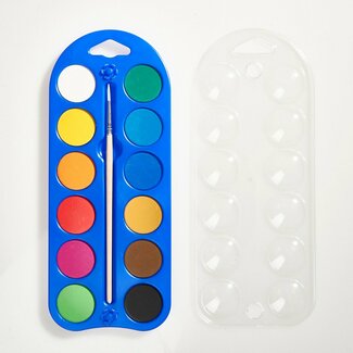 Boîte de 12 pastilles de gouache, idéale pour les activités créatives et artistiques des enfants.