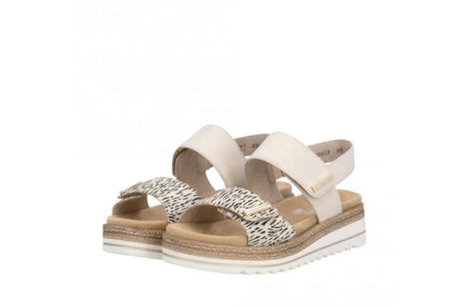 Ces sandales compensées beiges en cuir lisse combinent un look tendance et un confort incomparable. Les lanières, associées à une fermeture velcro double, assurent également un maintien parfait. Lite 'n Soft : une semelle intérieure douce et amovible rencontre une semelle extérieure ultralégère.