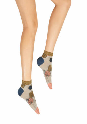 Une élégance lumineuse et subtile. Des fleurs délicates sublimées par des finitions colorées pour une socquette féminine et raffinée.