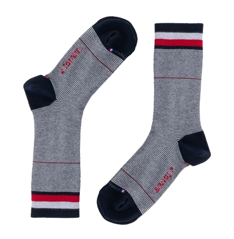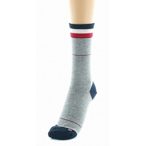 Alternance de fines rayures marine et écru, rompue par une fine rayure rouge sur le mollet et la pointe du pied. Les pointes et les talons sont bleu marine. Le bord souple de la tige rappelle les couleurs de notre drapeau bleu blanc rouge.