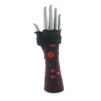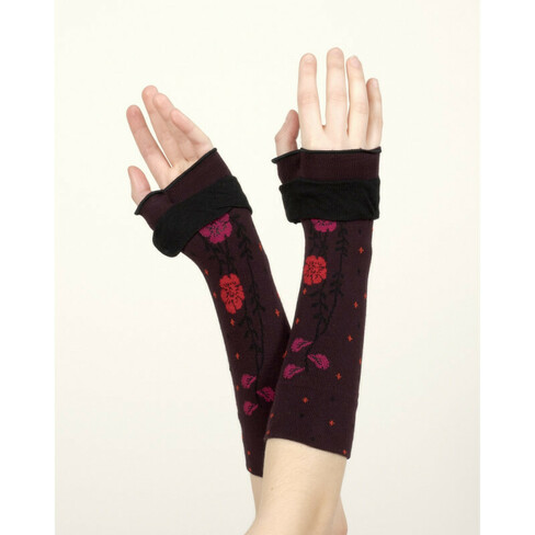 Les mitaines en coton "couleurs d'automne", l'accessoire tendance indispensable ! Des feuilles rouges et orangées tapissent le fond bordeaux. A assortir avec les chaussettes, écharpe, chapeau de la même collection.