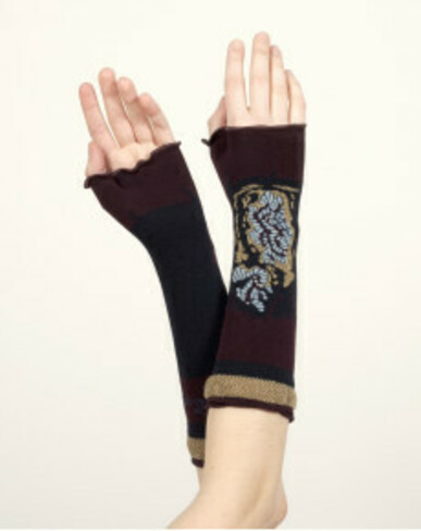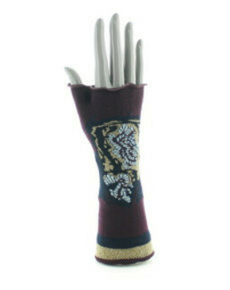 Les mitaines "fleurs de kimono" puisent leur inspiration dans la culture japonaise. Berthe revisite ici un kimono traditionnel et y ajoute son grain de folie ! Le fil pailleté doré illumine l'ensemble du modèle, tricoté sur un fond bordeaux et bleu marine.