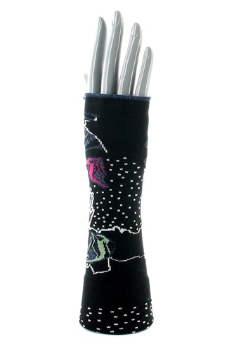 L'élégance des poissons Les mitaines "poissons" vous plongent au coeur des fonds marins, là où des dizaines de poissons colorés nagent avec harmonie, apportant une touche d'exotisme à vos tenues. Sur un fond noir, des poissons aux écailles colorées sont tricotées avec un fil argenté pailleté. Un savoir-faire 100% français