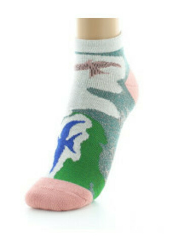 Le thème "Hirondelles" est ici décliné en socquettes de sport.