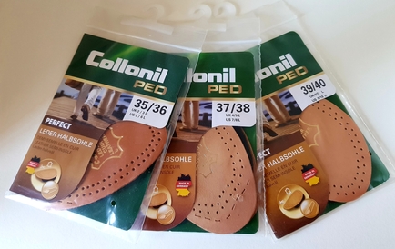 Pour porter les demi-semelle en cuir dans des chaussure sans bouts, coper le long de la perforation.
