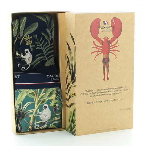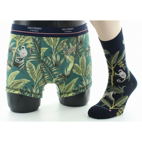 Composé d'une paire de chaussettes Jungle et de son boxer assorti, à offrir ou à s'offrir !
