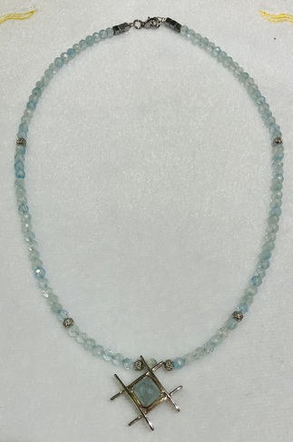 pour parfaire une tenue élégante, ce joli collier en aigue-marine et pendentif monté sur argent vous ravira à merveille.