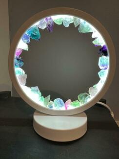 lampe led circulaire en fluorite, avec de jolis effets aussi bien allumée que éteinte. Une jolie lampe d'ambiance pour créer une atmosphère douce et agréable.