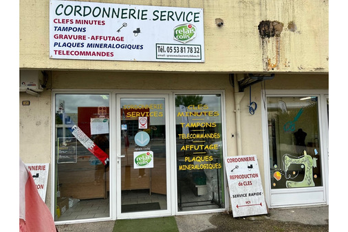 Services & Artisanat / Cordonnerie & Clés / CORDONNERIE SERVICES CORDONNERIE SERVICES Besoin d'un cordonnier ? Je suis là ! Cordonnier à votre service pour vos chaussures, ceintures et sellerie. Reproduction clés, création de plaques et tampons encreurs. RELAIS COLIS. Adresse 2 Avenue Georges Pompidou - 24700 Montpon-ménestérol Appelez-nous 05 53 81 78 32 Du MAR au VEN 8h45-12h/14h-18h15 - SAM 8h45 - 12h - Pourrait aussi vous intéresser SHOE PLUS à Bergerac Cordonnerie, travail du cuir Votre cordonnier à Bergerac SHOE-PLUS cordonnerie multi-services pour vos clés, tampons, chaussures, gravure, carte de visite... 05 53 24 24 76 ATELIER MISTINGUETTE à Grun-bordas Retoucherie & couture N'est ce pas merveilleux de créer quelque chose de ses mains ? Atelier Mistinguette , c'est ça ! L'amour du fait main , de la simplicité et de la sincérité... 07 68 90 92 48 84 produits en ligne chez ATELIER MISTINGUETTE GARAGE METO à Salignac Garage & mécanique auto 05 53 28 88 67