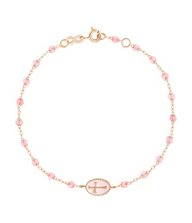 Bracelet médaille croix Perles Résine rose Or rose
