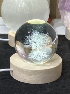 arbre de vie gravé à l'intérieur d'une boule en verre agrémenté d'une lampe led pour le mettre en valeur, jolie petite lampe d'ambiance.