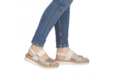 Ces sandales compensées beiges en cuir lisse combinent un look tendance et un confort incomparable. Les lanières, associées à une fermeture velcro double, assurent également un maintien parfait. Lite 'n Soft : une semelle intérieure douce et amovible rencontre une semelle extérieure ultralégère.
