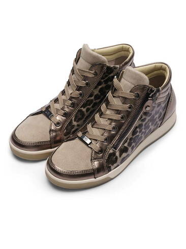 Cette bottine invite à la détente ! Le cuir souple lui confère une esthétique merveilleuse qui convainc instantanément. La chaussure est particulièrement confortable grâce au rembourrage doux qui permet d'éviter les points de pression désagréables. L'enfilage est facilité par la fermeture à lacets avec des oillets métalliques et la fermeture éclair latérale. La doublure souple en tissu d'éponge à base de fibres de bambou assure de véritables moments de bien-être. Cette matière est très agréable à porter et favorise un bon climat pour les pieds car il absorbe merveilleusement l'humidité et sèche rapidement. La semelle intérieure interchangeable n'est pas seulement doucement rembourrée, mais également recouverte de tissu d'éponge. Enfin, la bottine est également particulièrement confortable grâce à la technologie innovante HighSoft. Les pieds fatigués appartiennent désormais au passé. La semelle compensée confère à la chaussure un look sportif. Avec cette bottine de chez ara, les femmes adeptes de la mode sont parfaitement équipées.