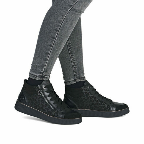 - Style ET confort. Ces mi-bottes remonte noires pour femme sont un véritable accroche-regard ! Outre les lacets, le modèle est également doté d'une fermeture éclair pour un bon maintien. La technologie «Lite 'n Soft» combine une semelle super légère avec une semelle intérieure rembourrée et amovible. La largeur G confortable, qui offre plus d'espace dans les chaussures, est un facteur de bien-être supplémentaire. Grâce à la doublure légère en microvelours, un confort idéal est garanti.