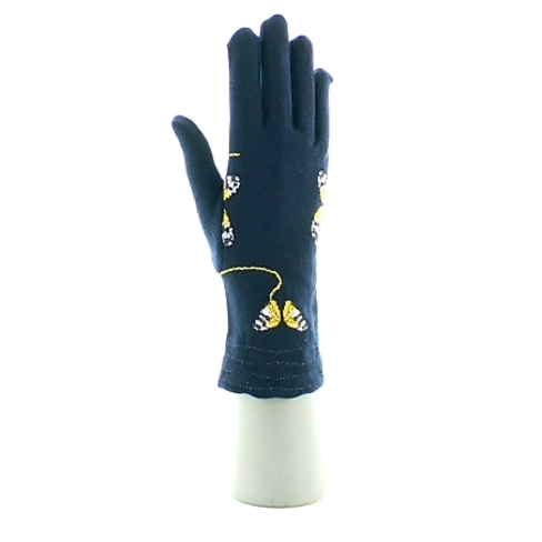 La couleur jaune alliée à l'ivoire des ailes du papillon illuminent le bleu légèrement pailleté qui composent cette création.