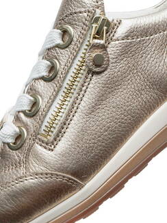 Pour les pieds larges : Ces baskets ara de largeur H, offrent au pied suffisamment d'espace dans la chaussure et empêchent le développement de points de pression. La doublure intérieure et l'assise plantaire amovible offrent une nette valeur ajoutée en termes de confort, car elles sont fabriquées en tissu éponge. Une matière douce et agréable au toucher, qui favorise le climat du pied et offre une bonne respirabilité. En outre, la chaussure est équipée de la technologie innovante HighSoft. Elle promet une semelle douce comme de la mousse et une marche sans fatigue grâce à l'association d'un cuir supérieur de haute qualité et d'une semelle intérieure légèrement rembourrée. Un bon ajustement est également assuré par la fermeture éclair et le laçage avec des oillets métalliques. Si cette chaussure à lacets et à talon compensé ne vous a pas déjà fait tourner la tête, son superbe design intemporel et sa semelle antidérapante sont autant d'arguments supplémentaires qui prouvent que cette chaussure répond habilement à des exigences élevées et mérite une place dans votre armoire à chaussures.