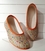 Chausson type ballerine, dessus tissus impression paille tressée ornée de fleurs multicolores.