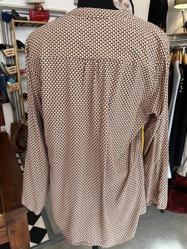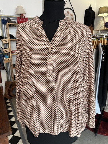 Haut brun à motifs rouges et bleus marine